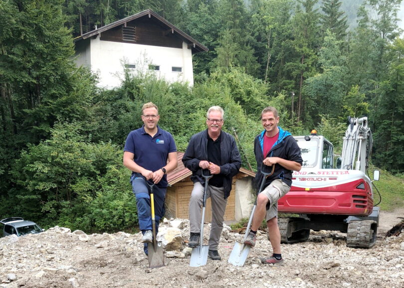 Bericht und Foto: Gemeinde Unterwössen – Beim Spatenstich v.l.n.r.: Wassermeister Wolfgang Fladischer, Bürgermeister Ludwig Entfellner und Toni Dirnhofer von der ausführenden Firma (nicht auf dem Bild: Stefan Wimmer)