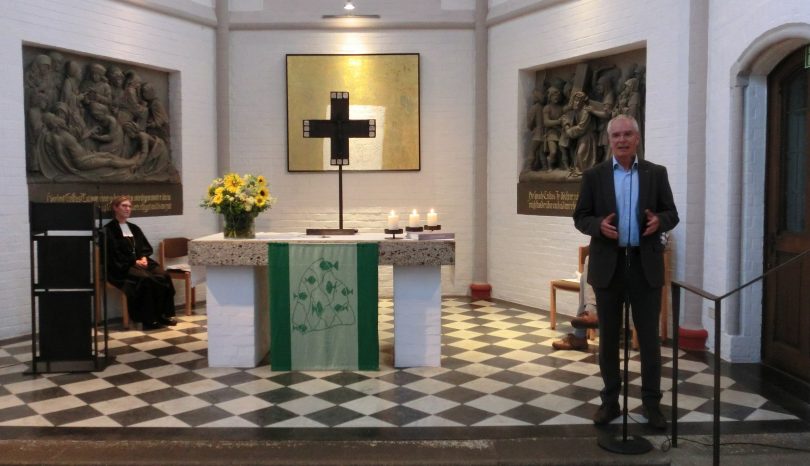 Am Sonntag, 12. Juli wurde im Rahmen eines Gottesdienstes in der Rosenheimer Erlöserkirche Pfr. Andreas Fuchs aus dem Amt als stellv. Dekan von Dekanin Häfner-Becker mit sehr großem Dank entpflichtet. In Corona-Zeiten, mit Abstand und Distanz ist das alles andere als einfach. Emotionen können nicht zum Ausdruck gebracht werden und der Segen zur Entpflichtung kann nicht aufgelegt, sondern muss auf Distanz zugesprochen werden. Alles etwas befremdlich. Aber der neuen Rosenheimer Dekanin, die seit 15. Februar im Amt ist, blieb leider keine andere Wahl, um dem verdienten Kollegen aus seinem Amt scheiden zu lassen.