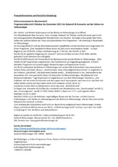 Es folgen Live- Konzerte mit Größen des mundartlichen Showbusiness wie „ Deschowieda“ am 06.11., den „Ursprungbuam“ am 08.11.2025, Stefan Wählt´s I-Band am 13.11. und Urgestein Michi Dietmayr am 20.11.2025. Natürlich dürfen auch die beliebten regelmäßigen Kulturveranstaltungen wie der Tanztee und die Country- Frühschoppen nicht fehlen im Jahresprogramm der Bühne im Höhensetiegr- alle Termine sind auf der Webseite des Gasthofs zu finden. Zum Ausklang des Kulturjahres wird nicht nur Besinnliches aufgetischt beim Höhensteiger: Amelie Diana und Andreas Bittl servieren am 06.12. „A Weihnachtsgschicht“ und kurz nach dem Fest heißt es O´ghängt is“ mit Da Meier und Watschnbaam.