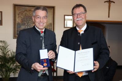 Cornelia von Kerssenbrock und Georg Hermansdorfer wurde die Verdienstmedaille des Verdienstordens der Bundesrepublik Deutschland verliehen. Im Auftrag des Bundespräsidenten Frank-Walter Steinmeier überreichte ihnen Landrat Otto Lederer für ihre Verdienste für das Gemeinwohl die Medaillen sowie die Urkunde im Halfinger Rathaus, da beide in der Gemeinde Halfing leben. Beide engagieren sich außerordentlich im kulturellen Bereich.