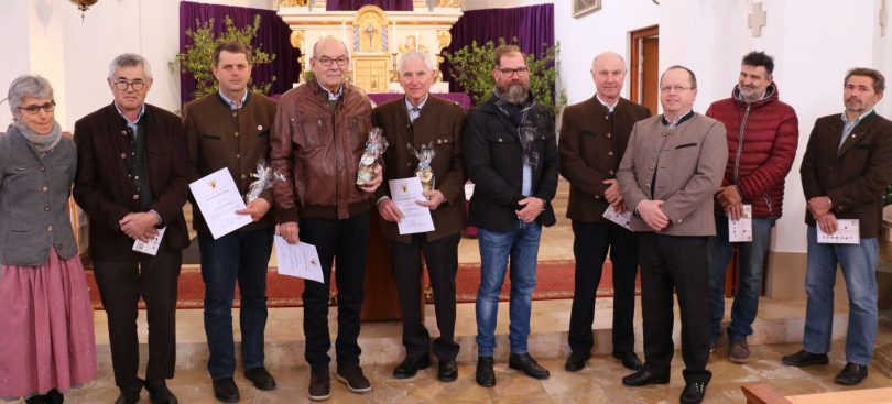 „Die drei aus der Kirchenverwaltung Wildenwart ausscheidenden Männer haben mit ihrem ehrenamtlichen Engagement die Geschicke der Pfarrei wesentlich mitbestimmt und dazu beigetragen das kirchliche Leben vor Ort zu sichern und zu fördern“. Der Verwaltungsleiter des Pfarrverbandes Westliches Chiemseeufer Matthias Wicha und Gemeindereferentin Ursula Stacheder übergaben beim Sonntagsgottesdienst in Wildenwart die Dankurkunden des erzbischöflichen Ordinariats für ihre langjährige Tätigkeit an Klaus Stemmer (12 Jahre), Michael Schlosser (6) und Richard Zettl (2). Matthias Wicha bedankte sich für die Arbeit zum Wohle der Gemeinschaft und dafür, dass sie immer ein bisschen mehr getan hatten, als es ihre selbst auferlegte Pflicht gewesen wäre. „Die einen gehen, die anderen kommen“, begrüßte er die neu gewählten Mitglieder im Gremium.