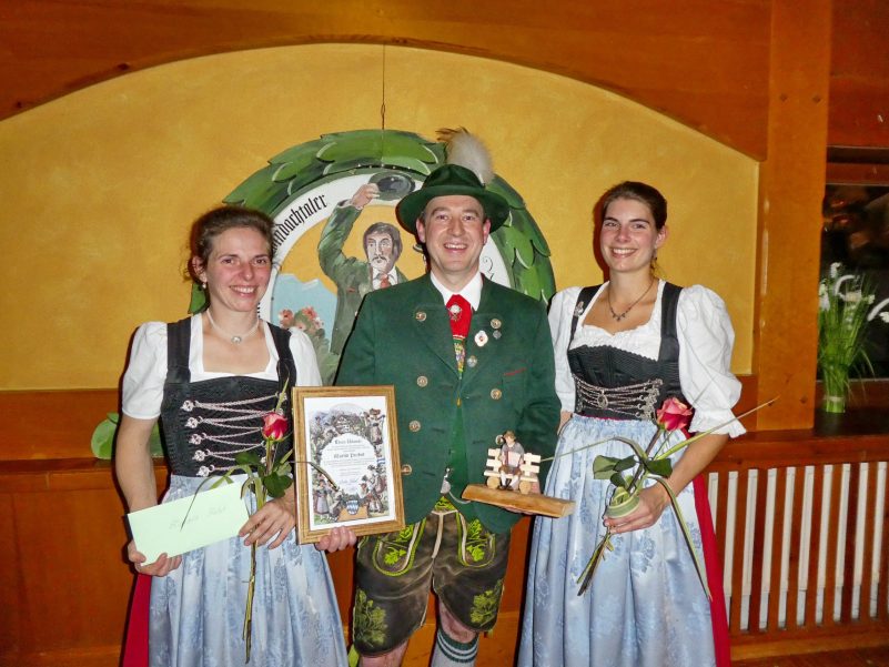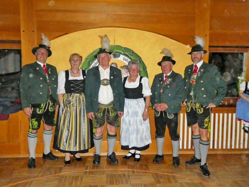 Traditionell am Kirchweihsamstag veranstaltete der Trachtenverein D´Windachtaler Hofstetten seinen Vereinsabend. Dabei war von den Kindern der Trachtenjugend über die Aktiven der Plattelgruppe bis zu den Senioren ein generationenübergreifendes Publikum vertreten. Stolz präsentierte die Trachtenjugend ein paar Auftritte und die Aktiven zeigten ebenfalls Plattler und Volkstänze. Die „Senfkristall-Musik“ sorgte für gute Unterhaltung und lockte auch einige Paare auf die Tanzfläche. Den Höhepunkt des Abends bildeten die Ehrungen langjähriger Vereinsmitglieder. Auf beachtliche 70 Jahre Vereinszugehörigkeit kann Ehrenmitglied Georg Reiber zurückblicken. Er bekleidete 42 Jahre verschiedene Ämter in der Vorstandschaft, u. a. war er acht Jahre 1. Vorstand, hat schon Einiges erlebt und viel für den Verein geleistet. Für 60 Jahre Vereinstreue wurde Hedwig Salger geehrt und Irmgard Probst sowie Hermann Scherdi sen. unterstützen den Verein seit 50 Jahren tatkräftig. Sie alle erhielten aus den Händen der beiden Vorstände Christian Blank und Matthias Klöpfer Ansteckzeichen. Emotional wurde es bei der Verabschiedung dreier ehemaliger Vorstandschaftsmitglieder. Martin Probst trat bereits mit 18 Jahren in die Vorstandschaft ein, wirkte dort neun Jahre mit Herzblut als 1. Jugendleiter, drei Jahre als 1. Vorplattler und übernahm schließlich 2015 von seinem Vater Sepp Probst die Vereinsführung bis 2022. Zusätzlich spielte er als Vereinsmusiker unzählige Proben und Auftritte der Plattler- und der Goaßlgruppe. Während seiner Zeit als Vereinsjugendleiter war er zugleich auch 1. Gaujugendleiter im Lechgau. Für seine vorbildliche und langjährige Arbeit bei den „Windachtalern“ erhielt er eine Urkunde und ein Geschenk sowie langanhaltenden Applaus. Ebenso verabschiedet wurden Elisabeth Probst als 2. Schriftführerin und Lucia Schuster als 2. Dirndlvertreterin. Sie führten ihre Ämter jeweils drei Jahre aus.