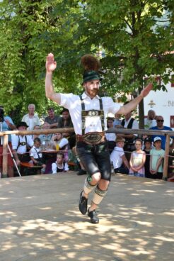 Bei schönstem Sommerwetter startete das Preisplattln und Dirndldrahn des Trachtenvereins d‘ Gamsgebirgler auf dem Platz vor dem Landgasthof Post.