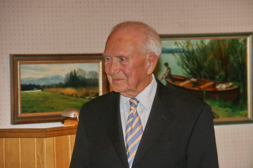 Bericht: Helga Schömmer – Foto: Hötzelsperger – Bildunterschrift: Franz Seebauer im Jahr 2008 bei einer Ausstellung im Priener Rathaus