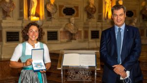 Bayerns Ministerpraesident Markus Soeder verleiht am Donnerstag (08.07.21) in der Residenz in Muenchen den Bayerischen Verdienstorden an Laura Dahlmeier.