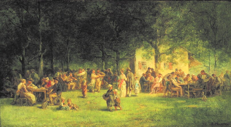 Den 200. Geburtstag von Anton Burger sowie den 180. Geburtstag von Hugo Kauffmann in diesem Jahr nehmen das Museum Kronberger Malerkolonie in Kronberg im Taunus in Kooperation mit der Kunstsammlung Markt Prien zum Anlass eine gemeinsame Ausstellung zu zeigen, welche sich den Werken aus dem bäuerlichen Leben von Anton Burger (1824-1905), und seinem Schüler Hugo Kauffmann (1844-1915) widmet. Ausgangspunkt der Ausstellung bilden die Kauffmann‘sche Gemälde aus der Sammlung Abé in Prien, 11 Arbeiten Anton Burgers kommen aus der Stiftung Kronberger Malerkolonie und privater Leihgeber hinzu. Der Titel der Ausstellung bezieht sich dabei auf den Werdegang Hugo Kauffmanns. Nach dem anfänglichen Unterricht durch seinen Vater, Hermann Kauffmann, begann Hugo Kauffmann zunächst – wie Anton Burger – sein Studium am Städelschen Kunstinstitut in Frankfurt bei dem Genre- und Landschaftsmaler Jakob Becker (1810-1872). Nach seinen Anfängen in Frankfurt besuchte Kauffmann von 1863 bis 1871 das Atelier des deutlich älteren Burger in Kronberg. Anschließend zog es Kauffmann weiter nach München, bis er sich 1872 in Prien am Chiemsee niederließ und dort zum Begründer einer Tochterkolonie zu der bereits seit 1828 entstandenen