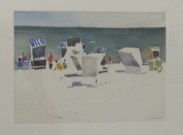 Dr. Irmingard Weise begrüßte die zahlreichen Besucher – die meisten waren von auswärts gekommen, was an den vielen Münchner Autokennzeichen zu erkennen war. Dr. Weise berichtete von dem thüringisch-bayrisch geprägten Lebenslauf des Künstlers, der 1977 seine Tätigkeit als freischaffender Architekt und Aquarellist begann, seit 2003 eine eigene Aquarell-Malschule betreibt, Malreisen in Europa und nach Nordafrika und Asien organisiert und Dozent an diversen Malakademien im In- und Ausland war, so z.B. 2019 Gastdozent an der School of Fine Arts in Athen. Wie der Titel der Ausstellung „unterwegs“ schon sagt, seien die gezeigten Bilder auf seinen Reisen wie u.a. nach Darß. Marokko oder Griechenland entstanden und würden einen Ausschnitt seiner bildgewordenen Seherlebnisse zeigen. Was Dr. Weise ganz besonders von ihm liebt, sind seine Kalender, die es seit vielen Jahren von ihm gibt.