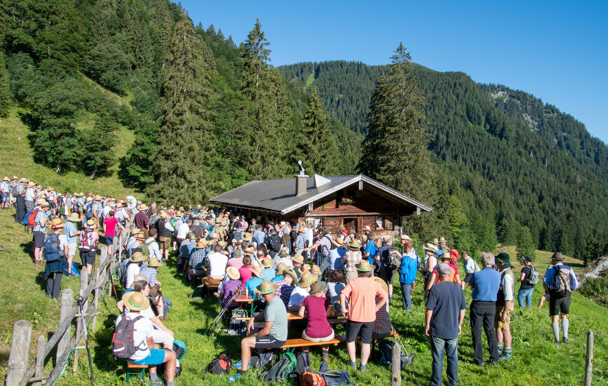 , Hauptalmbegehung des AVO in Rottach Egern , hier an der ersten Station Sieblalm der Auftakt, Foto tp, Jubiläumshauptalmbegehung, zur einmalligen Nutzung Almbauern im Rahmen der Hauptalmbegehung