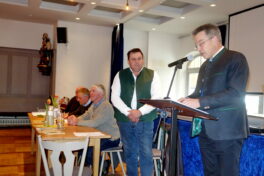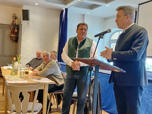 „Es ist unglaublich wichtig, dass in Zeiten steigender Anforderungen, komplizierter werdenden Vorschriften und des klaren Klimawandels Waldbesitzer, Jagdgenossen und Jäger miteinander handeln. Schauen wir gemeinsam auf ein gesundes Verhältnis von Wald und Wild und sehen wir auch, dass durch steigenden Freizeitdruck die Jäger belastet werden“ – so Landrat Otto Lederer in seinem Grußwort, der damit an das vor rund drei Jahrzehnten unter anderem von Sepp Spann konzipierten „Rosenheimer Modell“ und an das Miteinander von Jägerschaft und Waldbesitzer erinnerte. Zufrieden zeigten sich die Versammlungsteilnehmer vom dreifachen Kassenbericht der Jahre 2020 bis 2022 durch Kassier Sepp Lebmeier sowie von den drei Prüfungsberichten, die eine einstimmige Entlastung der Vorstandschaft mit sich brachte.