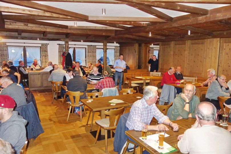 Foto: Hötzelsperger – Blick in den Saal des Gasthofes Mayerl bei der Begrüßung durch Veteranen-Vorstand Hans Winkler