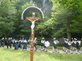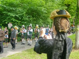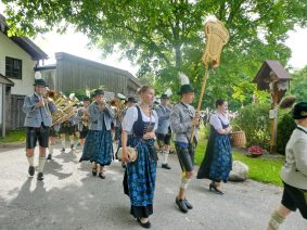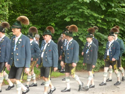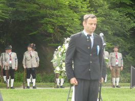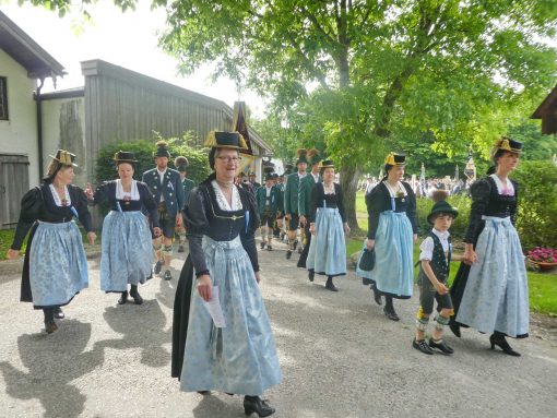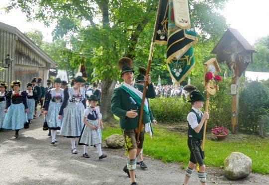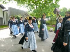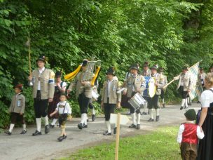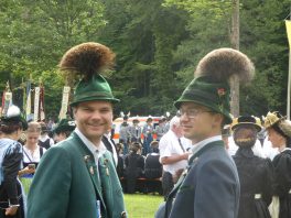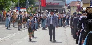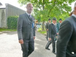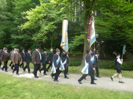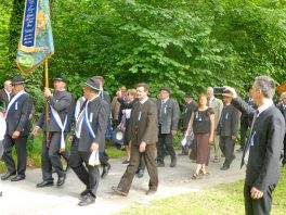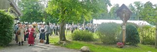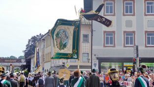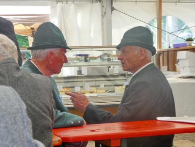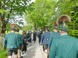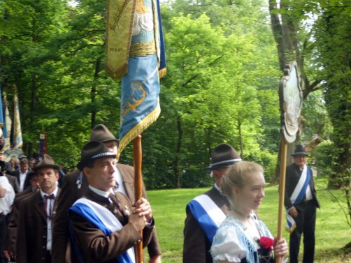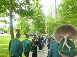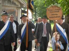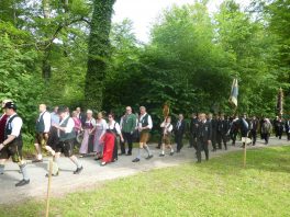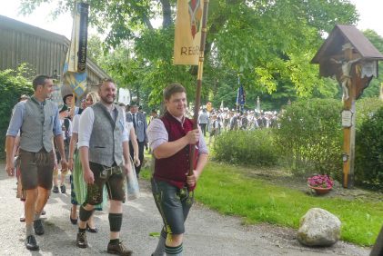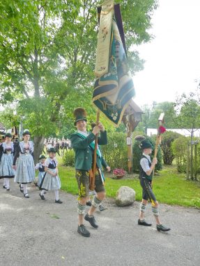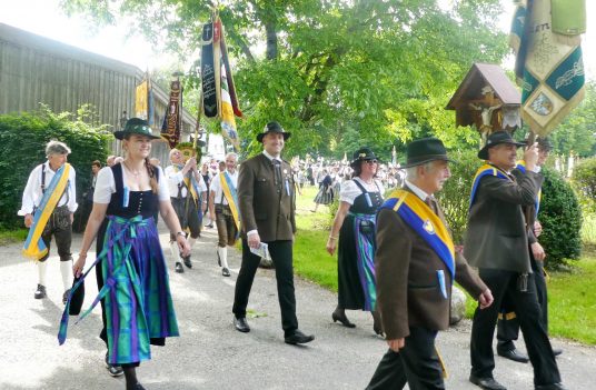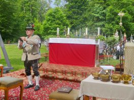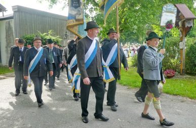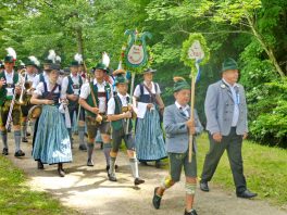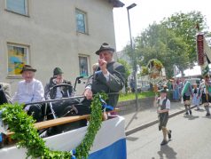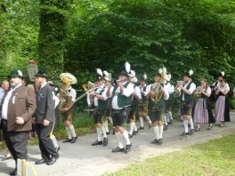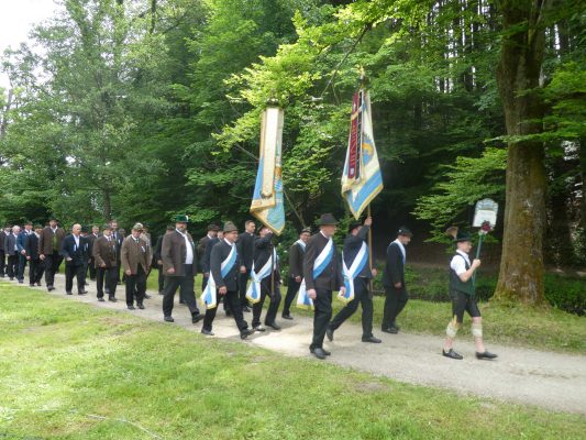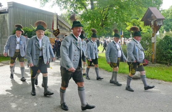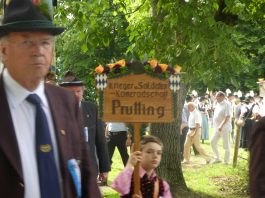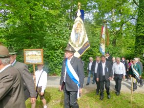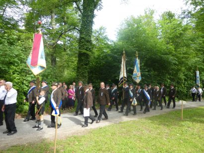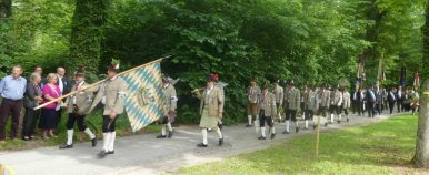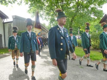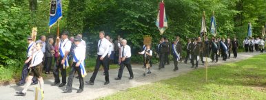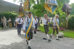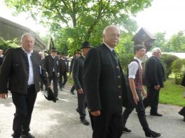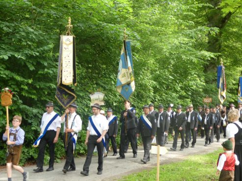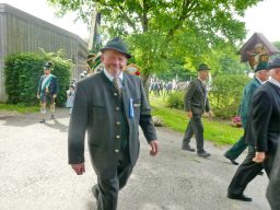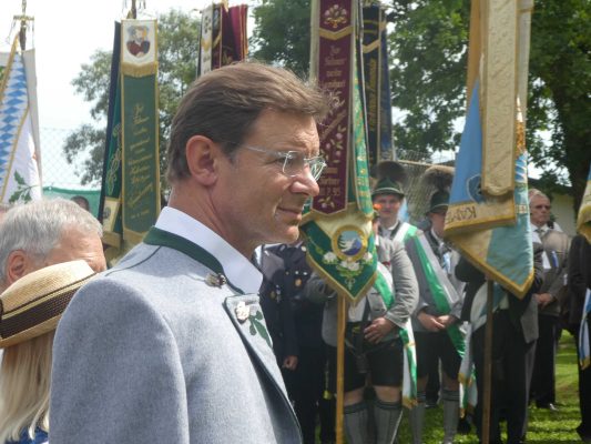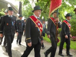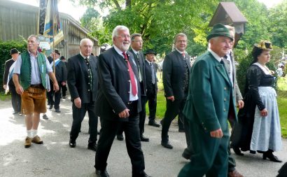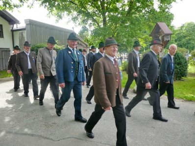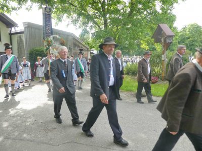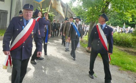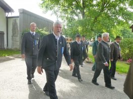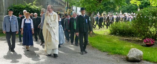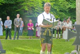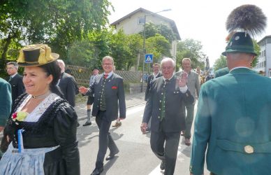 „180 Jahre sind es wert, gemeinsam zu feiern, viel wichtiger aber sind die Gründungsgedanken, die das Helfen und Kümmern zum Ziel hatten, als es aufgrund von Kriegen für die Hinterbliebenen viel Not und Elend gab. Und heute ist es wichtig, dass alle und jeder Einzelne Zeichen und Mahnmal für den Frieden sind, denn Frieden und öffentliche Ordnung sind uns zwar geschenkt, aber sie sind nicht selbstverständlich“ – mit diesen Worten zu Beginn des Festgottesdienstes im Priener Eichental bat Bürgermeister Jürgen Seifert vom Markt Prien und Schirmherr des heurigen Veteranenvereins-Jubiläums die Anwesenden, auch in Zukunft um gegenseitige Verständigung und um ein gutes Miteinander bemüht zu sein (Der Bürgermeister bat wegen einer jüngst erlittenen Rückenverletzung aufgrund einer ungewollten Stacheldraht-Begegnung um Verständnis, dass er zur Feier und Würde des Tages die Trachtenjoppe nur umhängen und nicht fest tragen konnte). „In Treue fest“ – dieses Motto des Festvereins mit Vorsitzendem Georg Fischer junior und mit Ehrenvorsitzenden Michael Anner senior war für Pfarrer Klaus Hofstetter am Dreifaltigkeitssonntag ein willkommenes Predigt-Thema. „In unzerbrüchlicher Treue zueinander stehen und Gott danken für all das Gute, das in den 180 Jahren in Prien und im Bezirk geschehen ist, das möge für uns Richtschnur für unser weiteres Leben sein“, so der Geistliche, der aus dem Alten Testament mit den Worten zitierte „Damit es Dir und Deinen Nachkommen gut gehe“ und diesen Gedanken auf die heutige Zeit und auf Prien anwandte indem er sagte: „Uns geht es gut, über 70 Jahre haben wir in unserem Land keinen Krieg erfahren, doch durch die Nähe mit Flüchtlingen merken wir, dass die Welt aus den Fugen geraten ist. Die Gereiztheit steigt nicht nur woanders, sondern auch bei uns in Prien, wenn man nur an das Thema Jugendherberge denkt. Aber deswegen wollen wir nicht in Jammern verfallen, denn Gott der Allmächtige und Barmherzige ist bei uns. Leben wir nach Gottes Geboten und tun wir nicht Anderen was an, was wir gegenüber uns selbst nicht wollen“. Pfarrer Hofstetter beendete seine Predigt mit den Worten „Gehen wir wieder mehr aufeinander zu, auch auf jene, denen wir das Kraut ausgeschüttet oder die wir verletzt haben, damit es uns gut geht in einem Land, das uns Gott geschenkt hat“.