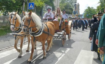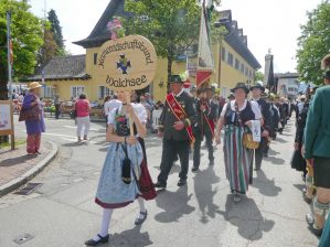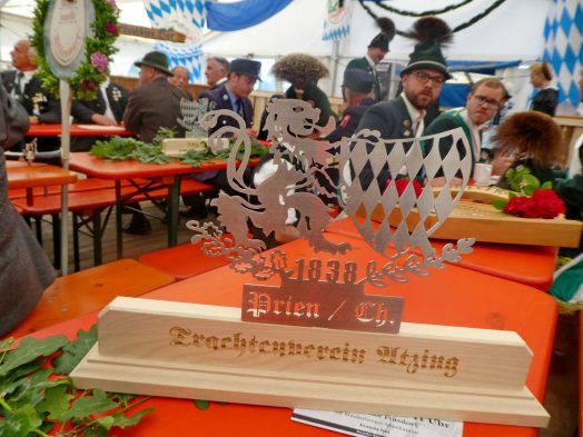 Der Festzug durch den durch einen großen Antikmarkt eh schon stark belebten Ort war geprägt von vier Zügen, von zwei Festkutschen, von den Blaskapellen Prien, Wildenwart und Pang, vom Spielmannszug der Priener Gebirgsschützen sowie von rund 90 Fahnenabordnungen der Veteranen- und Ortsvereine, die zum Teil auch mit einer großen Anzahl von Mitgliedern teilnahmen. Den Ausklang des Festtages bildete ein gemütliches Beisammensein mit Mittagessen im mit rund 1.800 Plätzen vollbesetzten Festzelt.