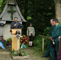 Der Vorstand der Krieger- und Soldatenkameradschaft Sachrang (KSK) Herbert Hoyer und Bürgermeister Peter Solnar hielten am Kriegerdenkmal die Ansprachen zum Jahrtag am Pfingstmontag. Solnar erinnerte an 72 Jahre Frieden in Deutschland, diesen gebe es nicht zum Nulltarif, der Friede müsse jeden Tag von Neuem erkämpft und erworben werden.