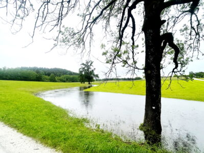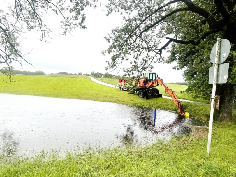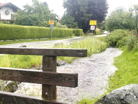 Gut vorbereitet sind Gemeinde Prien und die beiden Feuerwehren Atzing und Prien auf Hochwassertage. Ein Beispiel für gute Vorsorge ist beim Stettener Bach vor Prien–Atzing.
