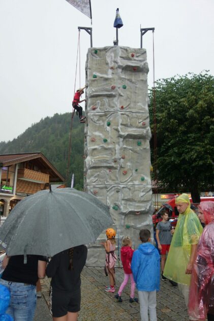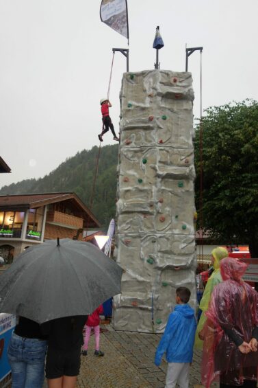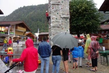 Auch wenn das Wetter dieses Mal nicht so richtig mitspielte, war das erste Straßenfest „Spaß und Lustig“ dieses Sommers im Ortszentrum von Reit im Winkl am Ende doch wieder eine gelungene Veranstaltung. Die Kinder hatten ihre Freude am Kletterturm, wobei sie sich auch von ein paar Regentropfen nicht stören ließen. Übrigens erst vier Mal wurde solch ein Straßenfest während des jetzt 21-jährigen Bestehens wegen dann starkem Regen abgesagt. Immer rappelvoll war das Tipi-Indianerzelt, wo die Kinder sich beim Basteln vergnügten. Ihre große Freude hatten sie auch beim bayerischen Kasperlspiel des Chiemseekasperls und bei verschiedenen Geschicklichkeitsständen. Auch das Wetter wurde besser und die aufgestellten Tische vor den angrenzenden Gastronomien füllten sich mehr und mehr. Das nächste Straßenfest ist dann am 26. Juli und das darauffolgende als Besonderheit in diesem Jahr am 1. August am Gaufest-Zelt.