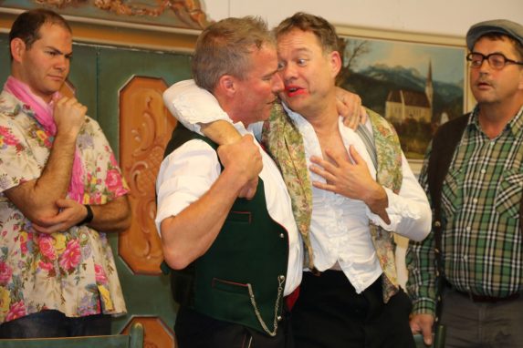 “Mit Blitz und Donner“ – wie der liebe Gott Beziehungsprobleme löst, geben heuer die Theaterer des Trachtenvereins „Die lustigen Wildenwarter“ zum Besten. Bei der Premiere der göttlichen Verwechslungskomödie „Meine Frau bin ich“ von Andrea Döring begeisterten sie die Besucher der ausverkauften Premiere im Saal der Schlosswirtschaft. Auf sehr gekonnte Weise strapazierten die elf Darsteller die Lachmuskeln der Zuschauer und wurden dafür immer wieder mit viel Applaus und zum guten Ende mit wohl verdienten Vorhängen belohnt.