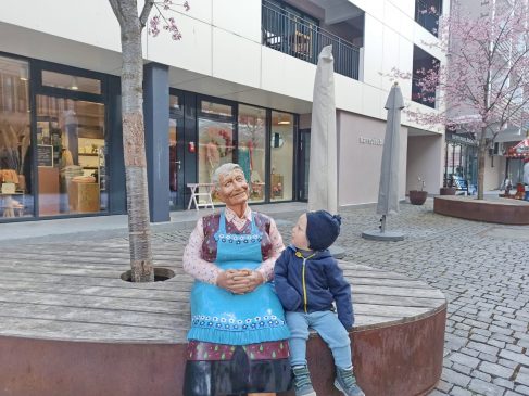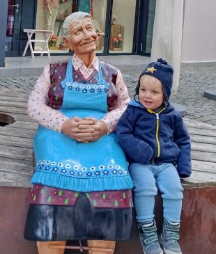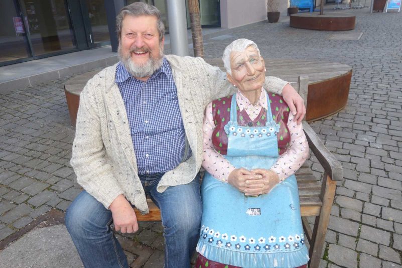 Die Beton-Oma in der Priener Bahnhofsstraße hat es Groß und Klein gleichermaßen angetan. Immer wieder können Passanten und Prien-Besucher sehen, dass sich Leute auf den freien Platz neben der Oma hinsetzen, um sich mit ihr fotografieren zu lassen. Damit bringen sie sichtbar zum Ausdruck, dass sie die Oma gerne haben. Unsere Aufnahmen zeigen einmal Bernaus Alt-Bürgermeister Klaus Daiber und den noch um ein Gutes kleineren zweijährigen Luggi bei ihren „Oma-Treffs“.