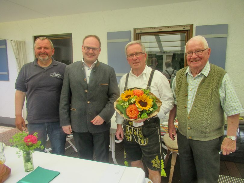 Fotos: Hötzelsperger – 1. Gemeinde-Gratulation von links: Stv. Bürgermeister Martin Aufenanger, Bürgermeister Andreas Friedrich, Jubilar Paul Panzer und Ehrenbürger Michael Anner senior.