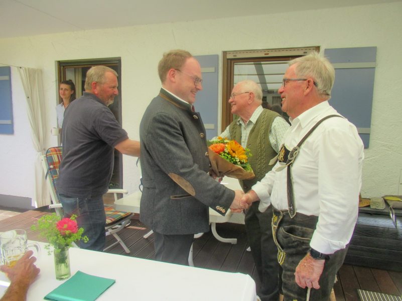 Paul Panzer, Ehrenoberleutnant der Priener Gebirgsschützen konnte in diesen Tagen seinen 80. Geburtstag bei bester Rüstigkeit feiern und einen schönen Sommertag lang gaben sich Familie, Freunde, Nachbarschaft und Ehrengäste die Türklinke zu seinem Garten in die Hand, um nach und nach zu gratulieren. Nachdem der Jubilar seit Jahrzehnten in Ehrenämtern viel für die Vereine getan sowie oft für die Restaurierung von sakralen Kunstwerken und mit Maler-Arbeiten geholfen hat, riss die Schar der Gratulanten nicht ab.