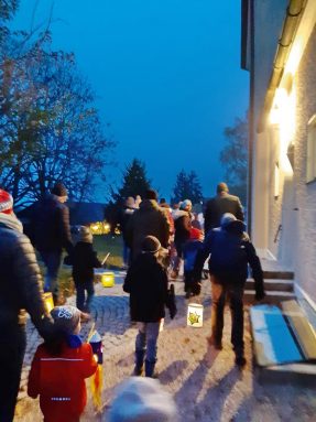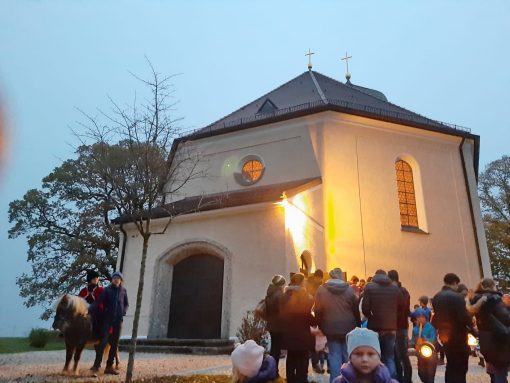 Die Christkönigkirche in Wildenwart war gut gefüllt mit vielen ganz kleinen Kirchenbesuchern sowie größeren Kindern, Mamas, Papas, Omas und Opas. Gemeindereferentin Conny Gaiser hielt eine schöne Andacht in der Kirche ab. Die Kinder machten ihr Martinsspiel großartig. So wurde St. Martin hoch zu Roß vor der Wildenwarter Kirche in Empfang genommen und eine kleine Abordnung der Wildenwarter Bläsergruppe begleitete den Gesang der Martinslieder. St. Martin zog mit seinem Lichtermeer von Laternen und strahlenden Kinderaugen um das Gotteshaus. Abschließend wurden die gesegneten Martinsgänse verteilt und die Besucher mit Kinderpunsch von der Mutter-Kindgruppe versorgt.