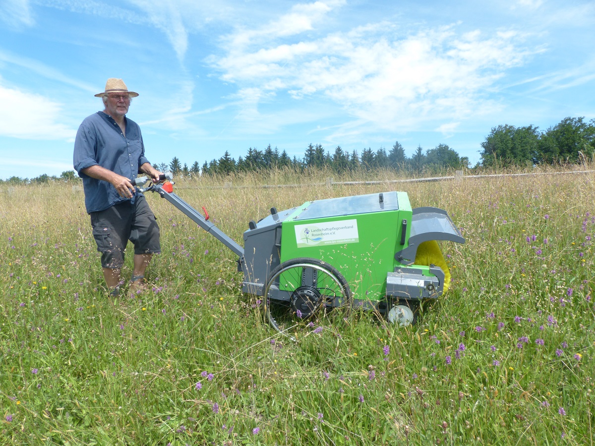 Mit einem Wiesensamen-Erntegerät hat der Landschaftspflegeverband Rosenheim einige Hektar artenreichen Grünlands besammelt, hier am Hitzelsberg in Bernau am Chiemsee.