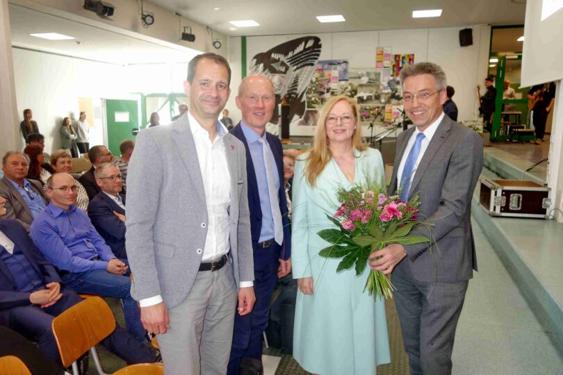 Landrat Otto Lederer begann sein Grußwort auch namens von OB Andreas März mit einem chinesischen Zitat zur Rolle des Lehrers: „Der Lehrer öffnet die Tür, Eintreten aber muß Jeder selber“ und er fügte hinzu: „Nur wenn man für eine Sache selber brennt, kann man Wissen weitergeben und deshalb dürfen wir uns freuen, mit Frau Vilma Sieß eine Führungskraft bekommen zu haben, die eine ausgesprochene Liebe zur Kultur und besonders zum Theater hat und die in ihrer bisherigen Amtszeit bewiesen hat, dass sie Macherin, Gestalterin und eine humorvolle und offene Chefin und Kollegin ist“. Der Landrat informierte noch, dass die Um- und Erweiterungsbauten in Höhe von rund 30 Millionen Euro zu einem FOSBOS-Campus bis zum Schuljahresbeginn 2024 abgeschlossen werden könnten. Als Vertreterin des Personalrates bezeichnete Eveline Wermuth eine gute Zusammenarbeit schon fast als Vorstufe zum Urlaub und sagte: „Ihr stets offenes Ohr und ihre Akzeptanz von Argumenten sind die besten Voraussetzungen für ein solidarisches Kollegium, wir freuen uns, mit Ihnen zusammenarbeiten zu dürfen“.