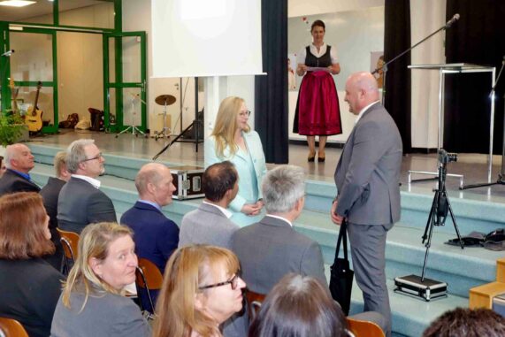 „Aus eigener Erfahrung weiß ich, dass Ihre neue Aufgabe keine einfache ist, dass sie viele Herausforderungen bereit hält, aber ich weiß auch, dass es eine reizvolle Position ist, wenn man Zusammenhänge erkennt, den Überblick behält und den Kurs hält“ – so der Ministerialbeauftragte Dr. Hunger. Weiters führte er aus, dass die FOSBOS in Bayern im Jahr 2020 das 50jährige Bestehen hätte feiern können (wegen Corona wurde es 2022 nachgeholt), über 50.000 Schülerinnen und Schüler haben in dieser Zeit in sieben verschiedenen Ausbildungsrichtungen entsprechend ihrer Talente ihre Berufsziele angestrebt. „Als ehemalige Fachlehrerin, die in Englisch und Deutsch in Regensburg das Staatsexamen machte und nach 30jähriger Berufspraxis in der Oberpfalz und in Ostbayern ihr Staatsexamen machte sowie als langjährige Prüferin bringen sie zusammen mit ihrer Eigenschaft, Freude am Umgang mit Menschen zu haben, die besten Voraussetzungen mit. Hier in Rosenheim finden Sie mit Landkreis und Stadt zwei Sachaufwandsträger vor, bei denen der Stellenwert Schule und Bildung besonders wichtig ist“. Dr. Hunger beendete seine Festansprache mit dem Zitat der amerikanischen Schriftstellerin Pearl S. Buck: „Die Jugend soll eigene Wege gehen, aber ein paar Wegweiser können nicht schaden“.
