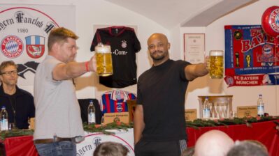 Für einen unterhaltsamen Abschluss sorgte ein Maßkrugstemm-Wettbewerb, bei dem sich Vincent Kompany überraschend gut mit einer Haltezeit von drei Minuten und sechs Sekunden zeigte. Ebenfalls vor Ort war Dieter Nickles, Pressesprecher des FC Bayern München, der den Besuch begleitete. Der Fanclub nutzte die Gelegenheit, um sich herzlich bei Bürgermeister Daniel Mair, der Feuerwehr Frasdorf, den Bedienungen, allen Helferinnen und Helfern sowie allen Gönnern des Vereins zu bedanken. Bürgermeister Daniel Mair ließ es sich nicht nehmen, Vincent Kompany in das Goldene Buch der Gemeinde Frasdorf einzutragen. Als besondere Ehre wurde der Bayern-Trainer zudem als Ehrenmitglied in den FC-Bayern-Fanclub Frasdorf aufgenommen. Abschließend bedankte sich der FC-Bayern-Fanclub Frasdorf herzlich bei Vincent Kompany für seinen Besuch und wünschte ihm sowie seiner Mannschaft eine weiterhin erfolgreiche Saison.