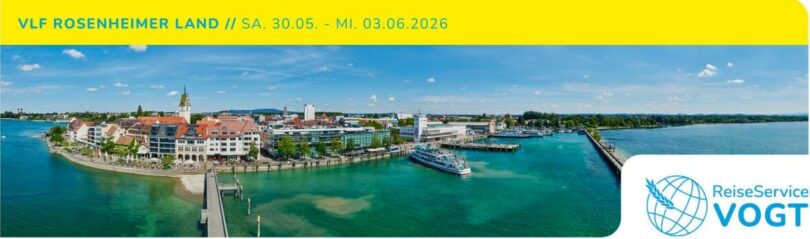 Der VLF Rosenheimer Land lädt von Samstag, 30. Mai, bis Mittwoch, 3. Juni 2026, zu einer abwechslungsreichen Bildungs- und Erlebnisreise rund um den Bodensee ein. Auf dem Programm stehen Betriebsbesichtigungen in Landwirtschaft und Verarbeitung ebenso wie kulturelle und landschaftliche Höhepunkte im Dreiländereck.