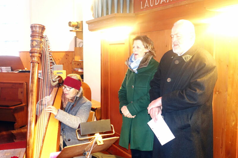Volksmusikalisch gestaltet wurde die Eucharistiefeier am Stephanitag vom Chiemseewinkl Dreigesang mit Gitti Edtmayer, Sepp Messerer und Liesi Huber, die den Gesang mit ihrer Harfe begleitete.