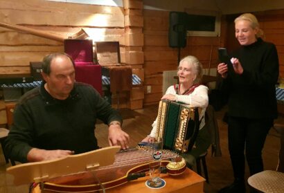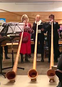 Angeblasen wurde der Hoagascht von einem Trio des Alphornensembles „Alphorn Bavaria Berlin“, Hilla Barz, Kerstin Heyde und Helmut Amberger. Stehts in bayerischer Tracht und mit traditionellen Musikstücken aus dem Alpenraum sorgen sie für einen gewissen alpinen Flair in der Hauptstadt-Region. Die Steirer-Musikanten vom Verein, Monika und Felix Lämmel, folgten mit stimmungsvollen Weisen auf ihren Harmonikas.