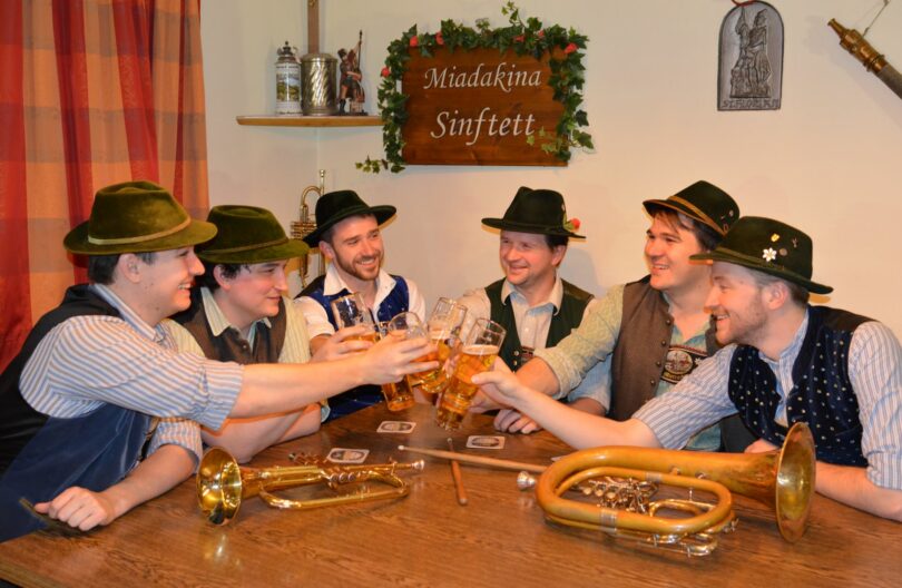 Am Donnerstag, den 22. August, von 19:00 Uhr bis 21:30 Uhr ist das Miadakina Sinftett bei Volksmusik im Brunnenhof im Bad Aiblinger Kurhaus zu Gast.