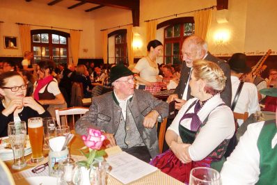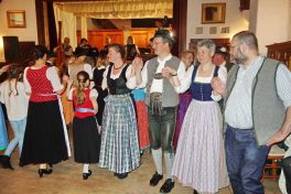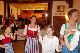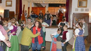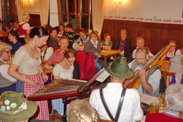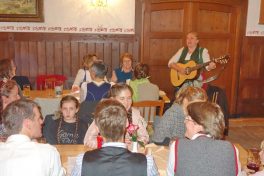15 Referenten aus Bayern und Österreich sorgen sich bei der Volksmusikwoche um die Aus- und Fortbildung auf verschiedenen Instrumenten sowie beim Gesang und Volkstanz, Schwerpunktthema ist heuer die Geige mit Referent Dr. Rudolf Pietsch aus Wien. Die Volkstanzkurse mit Josef Gotzlirsch enden mit einem öffentlichen Volkstanzabend (samt Schuhplattler-Einlagen) am Donnerstag, 20. April ab 20 Uhr im Saal des Gasthofes Maurer. Das „Volksmusik-Büffet“ der Volksmusikwoche reicht von Einzel- und Gruppen-Unterrichtsstunden über ein eigenes Kinderprogramm bis zur täglichen Notenausstellung in der Kegelbahn vom Gasthaus Alpenrose. Zum Programm gehören auch ein volksmusikalischer Nachmittagsausflug auf die Käseralm, am Freitag, 21. April um 18.30 Uhr ein Musikanten-Gottesdienst in der Ortskirche von Grainbach und ein öffentlicher Absschluss-Hoagascht, der nach dem Gottesdienst um 20 Uhr beim Gasthaus Maurer beginnt. Ersten Kostproben des Volkstanzes mit der „Lehrer-Musik“ folgten am Eröffnungsabend auch noch Einstimmungen zum gemeinsamen Singen durch Peter Reitmeir aus Tirol und Rosi Karger aus der Holledau. „Die Volksmusikwoche mit dem umfangreichen Rahmenprogramm ist nur durch das Zusammenspiel von Helfern vor Ort, von Sponsoren und Förderern und nicht zuletzt durch das Mitmachen der Wirte, Vermieter und Familien von Grainbach möglich“ – so Eva-Maria Kotte in ihrer Zusammenfassung ehe sich die 99 Teilnehmer individuell mit ihren Referenten auf den Stundenplan für die nächsten Tage verständigten.