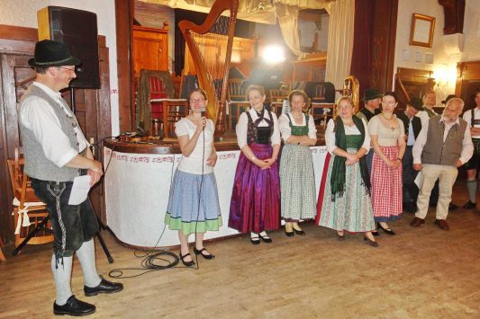Mit 99 teilnehmenden Dirndl, Buam, Frauen und Männern wurde am Ostermontag die 38. Volksmusikalische Fortbildungswoche auf dem Samerberg eröffnet. Zum 15. Male sind dabei Markus Schmid und Eva-Maria Kotte aus Kiefersfelden die Organisatoren und musikalischen Leiter bei dieser Zusammenkunft, die vom Kulturverein im Landkreis Rosenheim e.V. in Grainbach veranstaltet und vielfach von den Einheimischen und Volksmusikfreunden unterstützt wird.