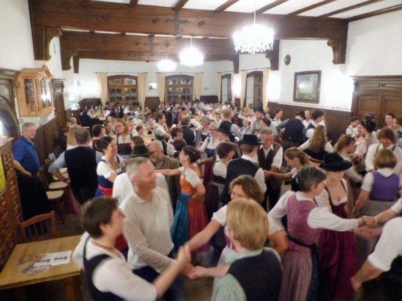 Fester und gerne angenommener Bestandteil der Volksmusikwoche, die heuer zum 38. Male auf dem Samerberg angeboten wurde, ist der Volkstanz. Nach zwei Kursabenden mit Tanzmeister Sepp Gotzlirsch aus Bruckmühl spielte einen Abend lang die Kirnstoana Tanzlmusi im Saal des Gasthauses Maurer in Grainbach zum Tanz auf. In seiner Begrüßung bedankte sich Zweiter Trachtenvorstand Christian Bauer vom Trachtenverein „Hochries-Samerberg“ beim Kulturverein im Landkreis Rosenheim e.V. als Veranstalter der Volksmusikwoche für die Förderung des Volkstanzes. „Das Tanzen gehört ebenso wie das Musizieren, Singen und die Mundartpflege zu unseren ursprünglichen Aufgaben innerhalb des Trachtenvereins – das ist nicht nur wichtig, sondern macht auch richtig Freude“. Ein weiterer Dank des Grainbacher Trachtenvereins gebührte den aktiven Dirndl und Buam des Trachtenvereins „Almenrausch“ Rossholzen für deren Kommen und Auftritte zwischen den Tanzweisen.