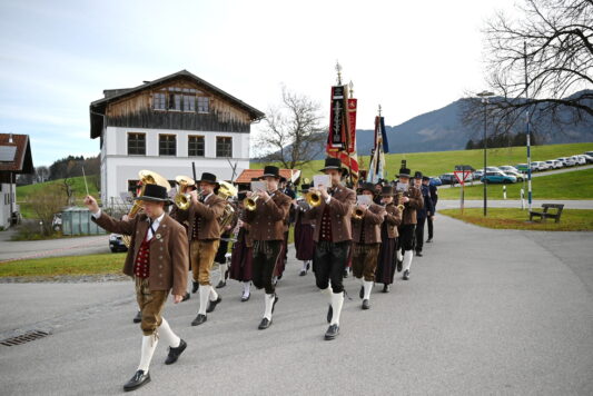 Am mittleren November Sonntag, dem Volkstrauertag, versammelten sich die Samerberger Ortsvereine in Rossholzen um gemeinsam ihrer verstorbenen Mitglieder zu gedenken. Angeführt von der Musikkapelle Samerberg zogen dabei zahlreiche Vereinsfahren in den gemeinsamen Gottesdienst.