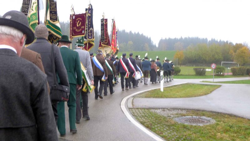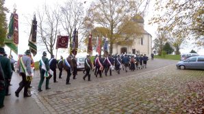 Die Gemeinden Prien und Frasdorf wechseln sich in der Ausrichtung des Volkstrauertages in Prutdorf ab, heuer war die Marktgemeinde Prien der Gastgeber. Gemeinsam mit der Wildenwarter Blaskapelle und den Mitgliedern des Veteranenvereins Wildenwarter wurde nach dem Gottesdienst in der Pfarrkirche “Christkönig” zum friedensmahnenden Denkmal nach Prutdorf marschiert. Den Gebeten von Ruhestandspfarrer Andreas Münck folgte eine Ansprache von Priens Zweitem Bürgermeister Hans-Jürgen Schuster. Er rief im Monat November zum Innehalten auf und forderte, dass jeder Einzelnen seinen Beitrag zum Frieden in der Welt leisten möge. Veteranen-Vorstand Florian Bauer erinnerte für die ehemalige Gemeinde Wildenwart ebenfalls an die Opfer von Kriegen, Vertreibung und Verfolgung. Dem Gedenken schloss sich noch die Versammlung der Veteranen in der Schlosswirtschaft an (weitere Bilder und Berichte folgen noch).