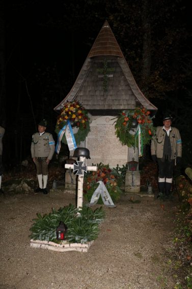 Zahlreiche Vereinsmitglieder der Krieger- und Soldatenkameradschaft Sachrang, die drei Bürgermeister der Gemeinde Aschau Peter Solnar. Max Pfaffinger und Monika Schmid, der Aschauer Veteranenverein, sowie die Sachranger Dorfvereine beteiligten sich am Gedenkgottesdienst in der gut besuchten Kirche Sankt Michael und am Libera am Kriegerdenkmal, gehalten von Pfarrer Hermann Overmeyer. Gerd Kalckbrenner und Bürgermeister Peter Solnar legten Kränze zum Gedenken für die Gefallenen, Vermissten und Verstorbenen des Dorfes nieder, die Aschauer Musikkapelle umrahmt die Feierstunde musikalisch, die Gebirgsschützenkompanie Aschau unter der Führung von Hauptmann Hubert Stein stellte die Ehrenwache und schoss den Ehrensalut.
