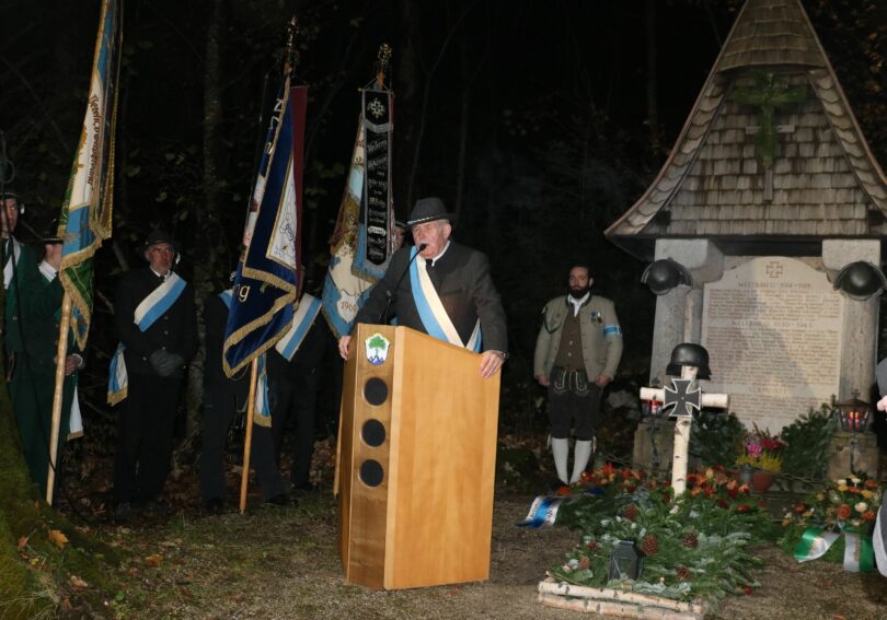 Bericht und Foto: Heinrich Rehberg – Der Vorsitzende der KSK Sachrang Bernd Wagner bei seiner Ansprache zum Volkstrauertag an der Sachranger Kriegergedächtniskapelle.