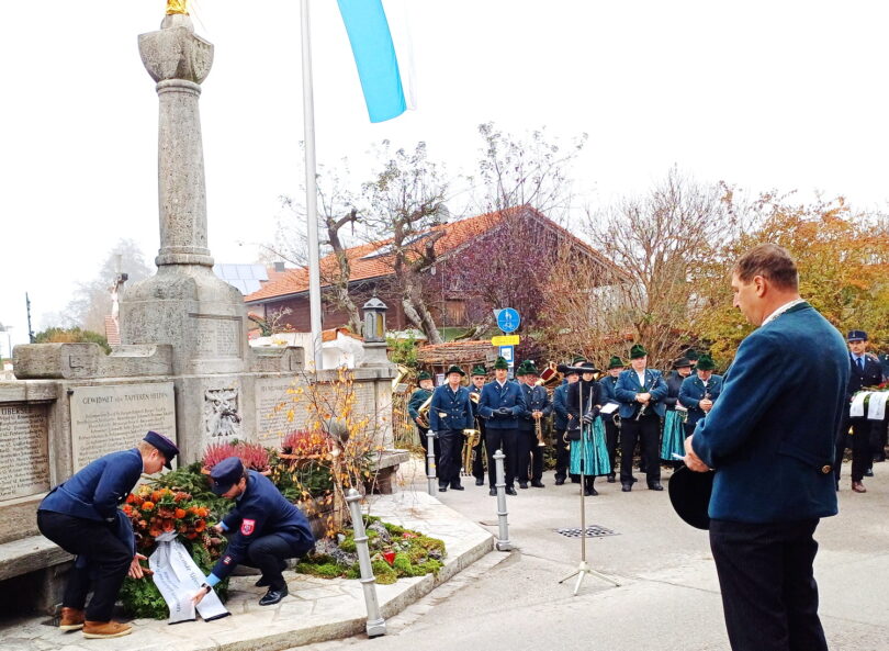 Um 10.15 Uhr stellen sich die Vereine an der VR-Bank zum Kirchenzug auf. Nach dem Gottesdienst ist das Gedenken am Kriegerdenkmal. Im Anschluss daran ist die Jahreshauptversammlung der Krieger- und Soldatenkameradschaft beim Gasthof Hinterwirt um circa 12 Uhr. Neben den Berichten der Vorstandschaft steht die Ehrung langjähriger Mitglieder auf der Tagesordnung.