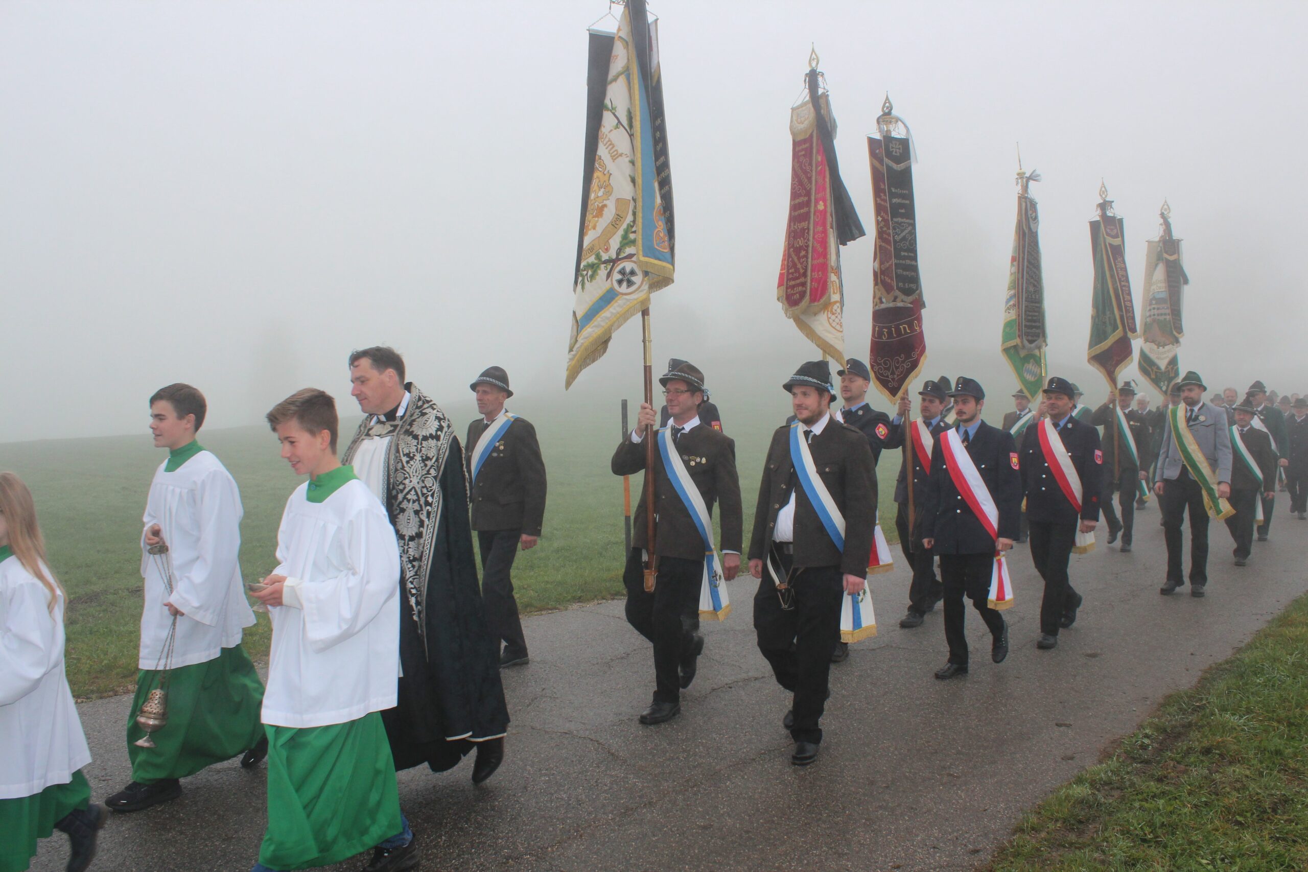 Die Wildenwarter Vereine auf dem Weg zur Kriegergedächtniskapelle in Prutdorf