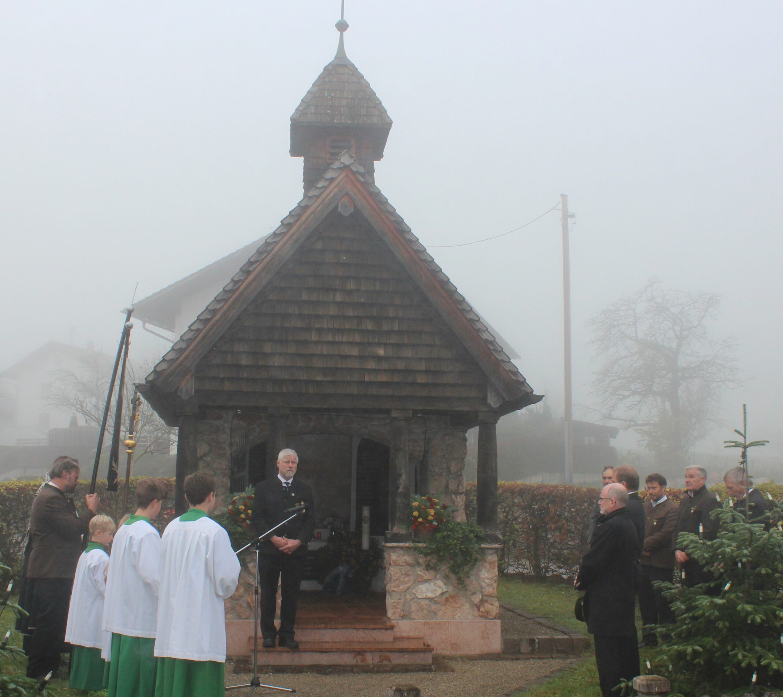 Der Vorsitzende des Veteranen- und Kriegervereins Wildenwart Florian Bauer erinnerte bei seiner Ansprache an die Ereignisse in der Ukraine und an die Schrecken des Zweiten Weltkriegs.