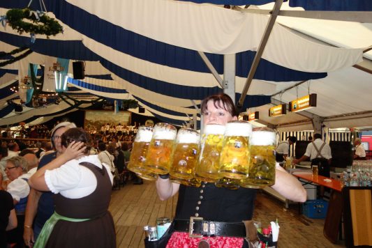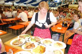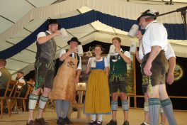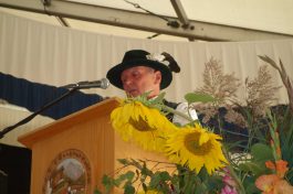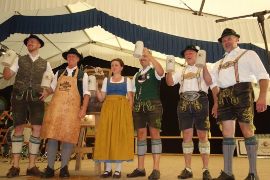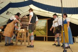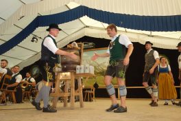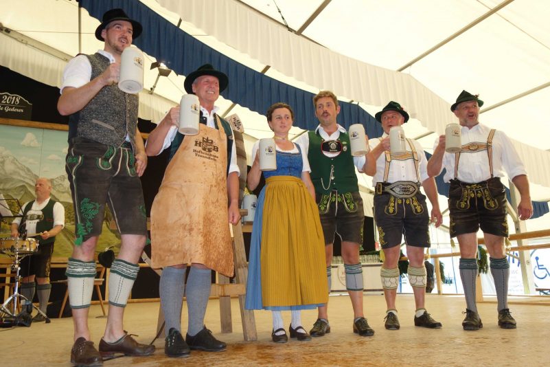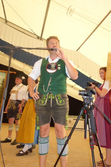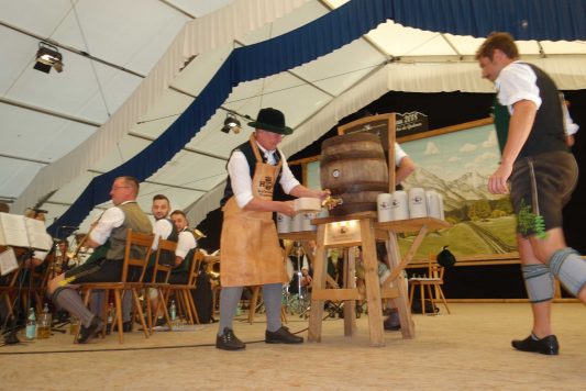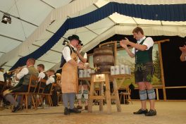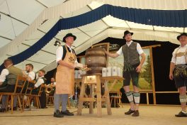 “Mit vielen Leuten haben wir gerechnet, aber nicht mit gar so vielen Leuten”, das sagte die glückliche Vorständin Lisi Hilger zum Auftakt des Gaufestes im großen Fesetzelt. Vom Bieranstich nachfolgender Bericht: “Die Vorständin Lisi Hilger vom Rottauer Trachtenverein begrüßte alle Ehrengäste und Gäste bei der ersten Veranstaltung des 82. Gautrachtenfestes des Chiemgau-Alpenverbandes, dem Bieranstich, im vollen Festzelt. „Mia gfrein uns, dass es endlich losgeht, nach langer Vorbereitungszeit und zwei Wochen Arbeit beim Einräumen und Dekorieren des Zeltes“, sagte sie. Sie forderte alle auf, sich das Kaffätschal und die Bar anzuschauen, um zu sehen, welche guten Ideen unsere Leute hatten, um den Besuchern des Festes den Aufenthalt im Festzelt recht angenehm zu gestalten. In seiner Eröffnungsrede sprach der Schirmherr Bürgermeister Rudi Jantke dem Ausrichter, dem Trachtenverein „d´Gederer“ einen großen Dank aus. Vorständin Lisi Hilger, der Vereinsausschuss und die Mitglieder haben unzählige Stunden an Freizeit geopfert, um uns ein schönes Fest zu bereiten, fuhr er fort. Besonders die letzten Wochen waren zeitaufwändig. Beim Zeltaufbau und bei der Dekoration haben „so viele – ja schon fast unglaublich viele“ mitgeholfen. Die Aktiven haben eine sensationelle Bar, die „Torfbahn-Boazn“, gebaut und ein ganz besonderes Kaffeezelt lädt zum Verweilen ein. Seine kurze Rede beendete er mit der Feststellung „Es ist alles gerichtet. Mit den Worten „Auf geht´s zum Ozapfn“ ging er seine Arbeit als Schirmherr an. Mit drei kräftigen Schlägen meisterte er seine Aufgabe sehr gut. Helfend zur Seite standen ihm dabei vom Hofbräuhaus Traunstein Außendienstmitarbeiter Andi Hell und Chef Maximilian Sailer.