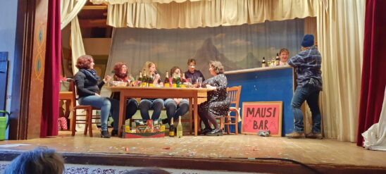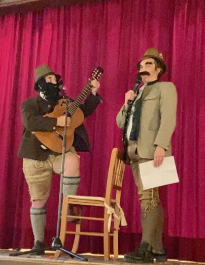 Vorsitzende Gisela Schober führte wie immer schwungvoll durchs große Programm und brachte zusammen mit Katharina Riedl einen Sketch über die „wirklichen Hintergründe des Bade-Unfalls auf dem Pflegersee“ auf die Bühne. Die Joham-Hilde, Ihres Zeichens Samerberger Urgestein des Weiberfaschings, übte zusammen mit ihrer Enkelin und dem Publikum die La-Ola-Welle. Die Ehrengäste „G und G“, alias Bürgermeister Georg Huber und Diakon Günter Schmitzberger hatten in ihrer Einlage mit der „klammen Kasse“ zu kämpfen. Werbe-Einblendungen während des Gottesdienstes zu machen, war aber dann doch zu viel. Völlig überraschend hatten sich auch zwei Riederinger Sänger eingeschlichen. Als Bezahlung für diesen Frevel, mussten sie sogleich die Bühne erklimmen und ihre bekannten Spotverse zum Besten geben. Wer genau hinsah, konnte mindestens einen Huagl-Sepp erkennen. Überhaupt wurden in diesem Jahr so viele Einlagen wie schon lange nicht mehr aufgeführt, ein randvolles Programm, von dem so mancher Veranstalter nur träumen kann. So traten die Steinkirchner Schlümpfe auf, die Raben von Rund-Uma-Dum waren auch mit dabei und in Törwang hatten sich die Frauen in der Schönheitsfarm sogar unters Messer gelegt, um für das Weiberkranzl gerüstet zu sein. Zum Abschluß des Nachmittags tanzten die „Samer Cheers“ eine fetzige Einlage. Schluß war aber noch lange nicht, jetzt ging es nochmal richtig los mit der Musi „Zaxn Di“ und dem großen Auftritt der Rohrdorfer Faschingsgesellschaft. Wer dann noch konnte, feierte weiter, bis der Wirt das Licht ausmachte.