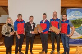 Bild 13: v.l.: Euregio Inntal Präsidentin Barbara Schwaighofer, Regionalleiter der Bergwacht Chiemgau Dr. Klaus Burger, Landesleiter der Bergrettung Tirol Ekkehard Wimmer, Regionalleiter der Bergwacht Hochland Ost Klaus Opperer, Regionalgeschäftsführer Bergwacht Chiemgau David Pichler und Bereitschaftsleiter der Bergwacht Sachrang-Aschau Thomas Riepertinger