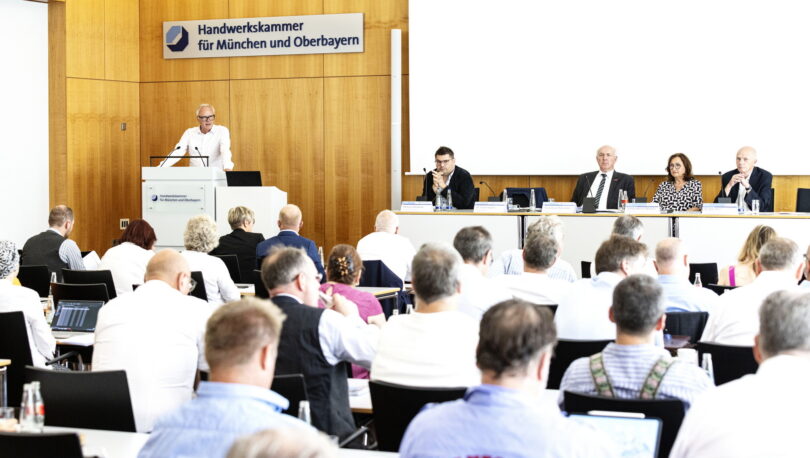 Der Kammerpräsident betonte, dass neben der Bundes- und EU-Politik auch die Rahmenbedingungen vor Ort entscheidend für die Betriebe seien. Im Großraum München sind das beispielsweise die Parkflächen für Handwerker. „Auf unsere Initiative hin hat die Landeshauptstadt einen Modellversuch gestartet, damit unsere Betriebe zumindest theoretisch die Chance haben, einen Parkplatz zu finden, wenn sie beim Kunden Dienstleistungen erbringen. Längerfristig sollen speziell für Handwerker geschaffene Parkplätze über eine App gebucht werden können“, so Peteranderl. Zugleich kritisierte er Pläne der Stadt, wonach die Sondernutzungsgebühren für Baustelleneinrichtungen teilweise drastisch erhöht werden sollen. Diese werden erhoben, wenn öffentliche Flächen für baustellenbezogene Zwecke genutzt werden. Auch Bußgelder bei Stillstand auf Baustellen sind im Gespräch. Der Kammerpräsident: „Je mehr die Landeshauptstadt unseren Betrieben die Arbeit erschwert und sie mit steigenden Gebühren belastet, desto weniger Betriebe werden sich finden, die z.B. den enormen Bedarf an bezahlbarem Wohnraum decken und dringend nötige Arbeiten an der Infrastruktur ausführen. Vor dem Hintergrund der Olympiabewerbung bewegt sich die Stadtspitze mit dieser handwerksunfreundlichen Vorgehensweise auf einem schmalen Grat.“
