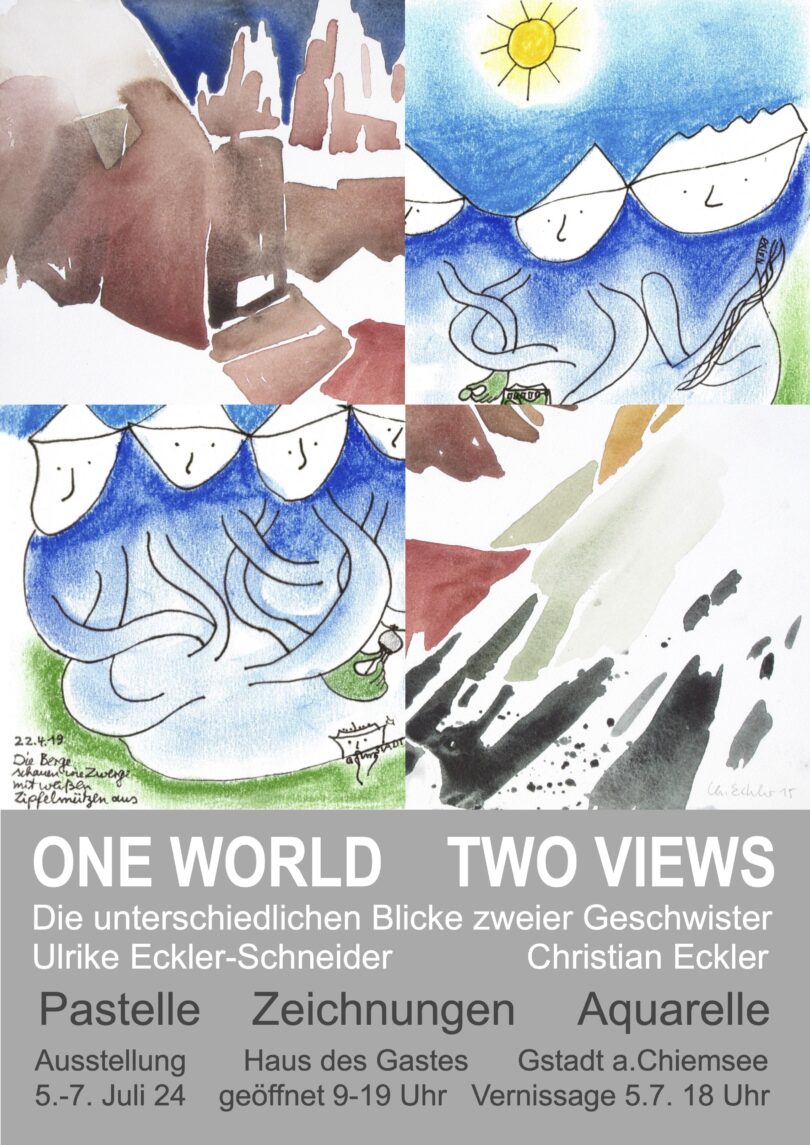 Das gemeinsame Bedürfnis nach kreativem Schaffen, aber formal und inhaltlich unterschiedliche Blicke und Malstile haben die Geschwister zu dem Ausstellungstitel “one world – two views” veranlasst.
