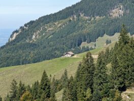 Die letzten Septembertage verwöhnen mit milden Temperaturen, strahlendem Sonnenschein und stahlblauem Himmel – beste Voraussetzungen für eine Almenwanderung. Ich entscheide mich für eine Tour zum Altkaserkogel in den südlichen Ausläufern der Chiemgauer Alpen, meinem Lieblingswandergebiet mit den sonnigen Grasbergen über dem Kaiserwinkel. Ich war schon öfter am Spitzstein und dem darunterliegenden weitläufigen, aussichtsreichen Almengebiet, aber meine beiden Begleiter kennen es noch nicht. Als Ausgangspunkt wähle ich diesmal den Wanderparkplatz Erlerberg.