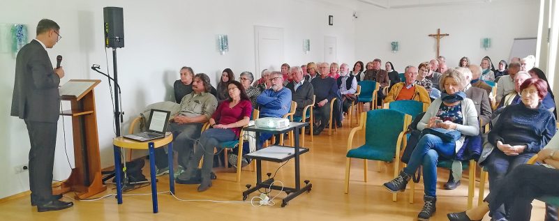 Ausgehend von der Überschrift: “Vom Römerstein zum Bayernherzog – Die Klostergründung Tassilos III. auf Frauenchiemsee“, eröffnete Dr. Steidl anhand eines schon seit über 100 Jahren bekannten römischen Inschriftensteins aus Marmor von der Fraueninsel, der über verschiedene Stationen seinen Weg in die heutige Archäologischen Staatssammlung fand und dort unbeachtet an einer Wand hing, eine kriminalistische Spurensuche, die überraschende neue Perspektiven auf die Gründung des Inselklosters frei gibt.