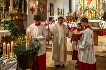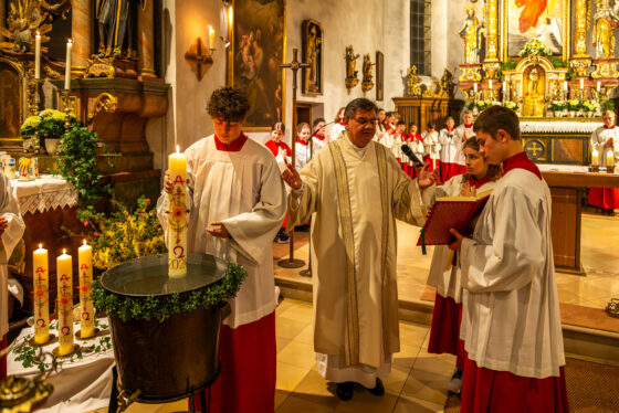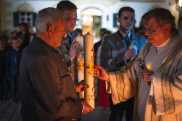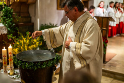 Der Gottesdienst endet mit einer Sendung der Gläubigen, um das Licht und die Freude der Auferstehung Christi in die Welt zu tragen. Diakon Günter Schmitzberger spendet den Segen und die Gemeinde antwortet mit einem festlichen “Halleluja”.Am Ende des Gottesdienstes wurden auch die vielen mitgebrachten Osterkörbe gesegnet, die die Besucher dann gemeinsam mit dem Osterlicht und dem Osterwasser mit nach Hause nahmen.Der Osternachtsgottesdienst ist eine feierliche und bedeutungsvolle Feier, die die Gläubigen dazu einlädt, die Auferstehung Jesu Christi zu feiern und die Hoffnung auf das ewige Leben zu bekräftigen.